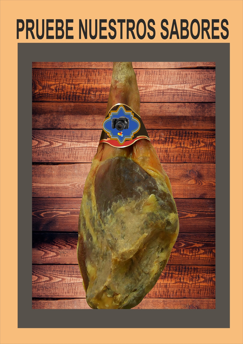 Cartel con foto de un jamón.